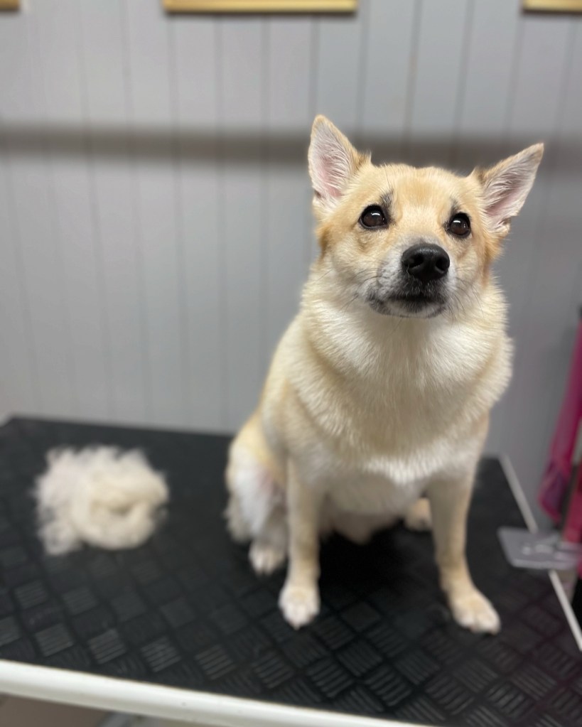 Det var da en glede å gi Ronja et røytebad, og en god børst for få av den løse pelsen. Hun skal i selskap og da var det greit å være ren og litt mindre hår 🥰
